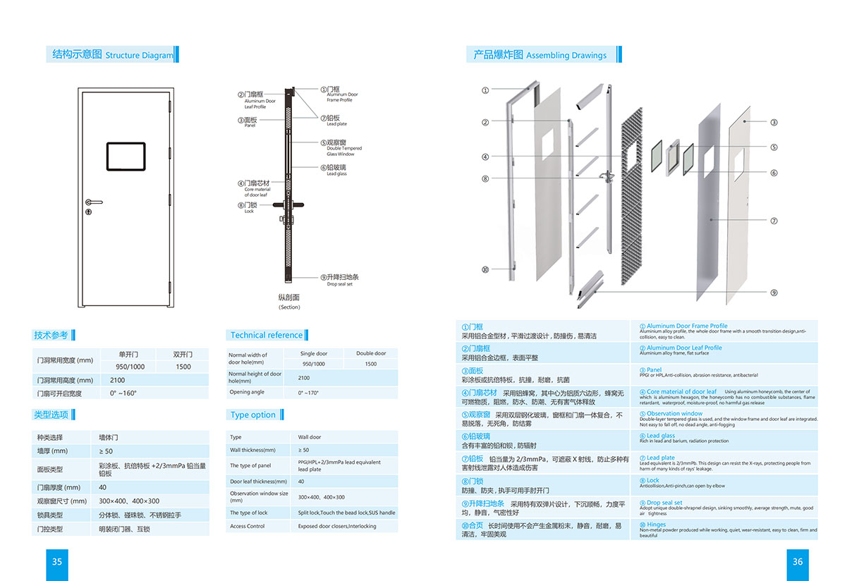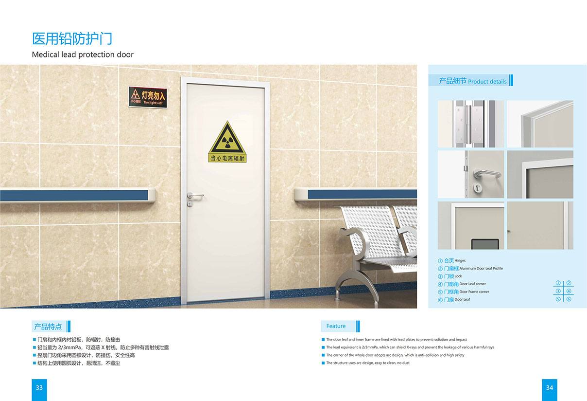 The door leaf and inner frame are lined with lead plates to prevent radiation and impact